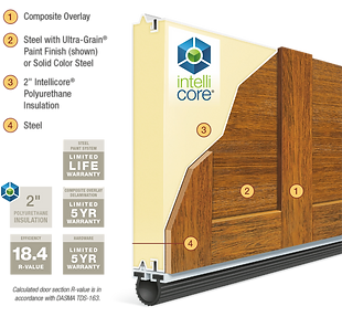 Insulation made of 2″ Intellicore® polyurethane with a thermal break. 18.4-value R.