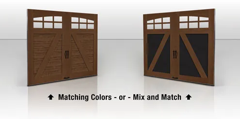 The Clopay Canyon Ridge® Carriage House (4-Layer) garage doors combine traditional carriage house styles with modern functionality, energy efficiency, and technology. Steel is used in the construction of these doors for strength and longevity, while composite overlays are moulded for aesthetics and realism. These doors come with: