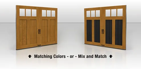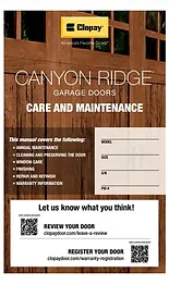 The Clopay Canyon Ridge® Carriage House (4-Layer) garage doors combine traditional carriage house styles with modern functionality, energy efficiency, and technology. Steel is used in the construction of these doors for strength and longevity, while composite overlays are moulded for aesthetics and realism. These doors come with: